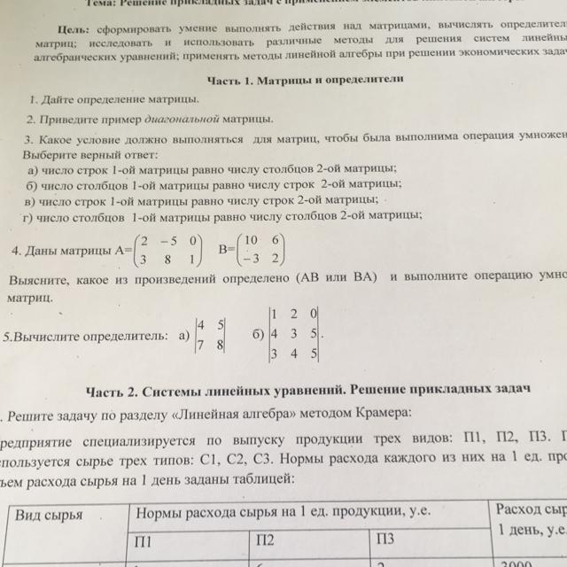 Выясните, какое из произведений определено (AB или ВА) и выполните операцию умножения матриц