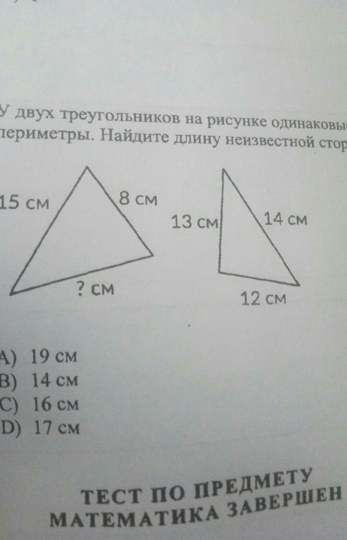 так как периметр обоих треугольников равен 39 То это сторона равна 19 см .