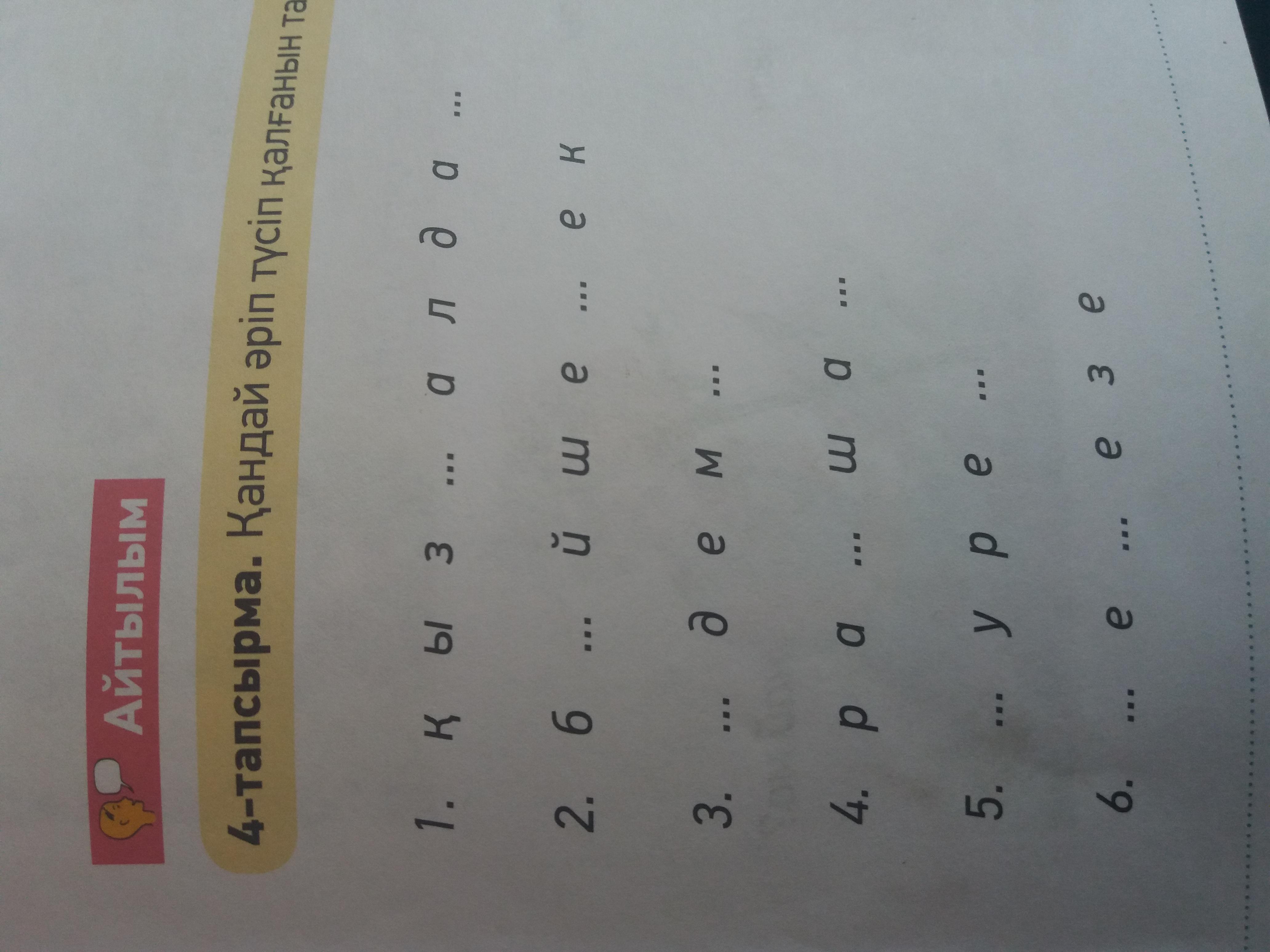 Помогите пожалуйста! Надо вставить пропущенные буквы, чтобы получилось казахское слово.