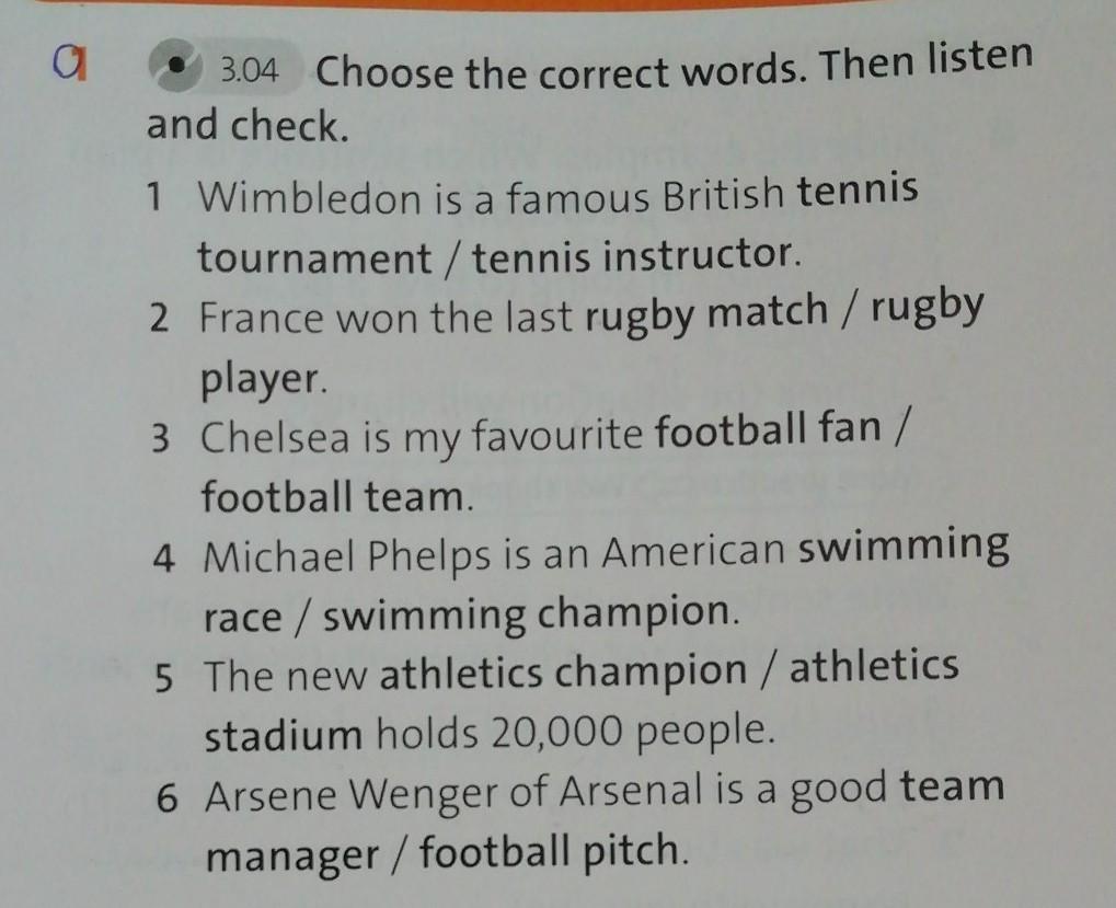 1 tennis tournament 2 rugby match 3 football team 4 swimming champion 5 athletics champion 6 team manager