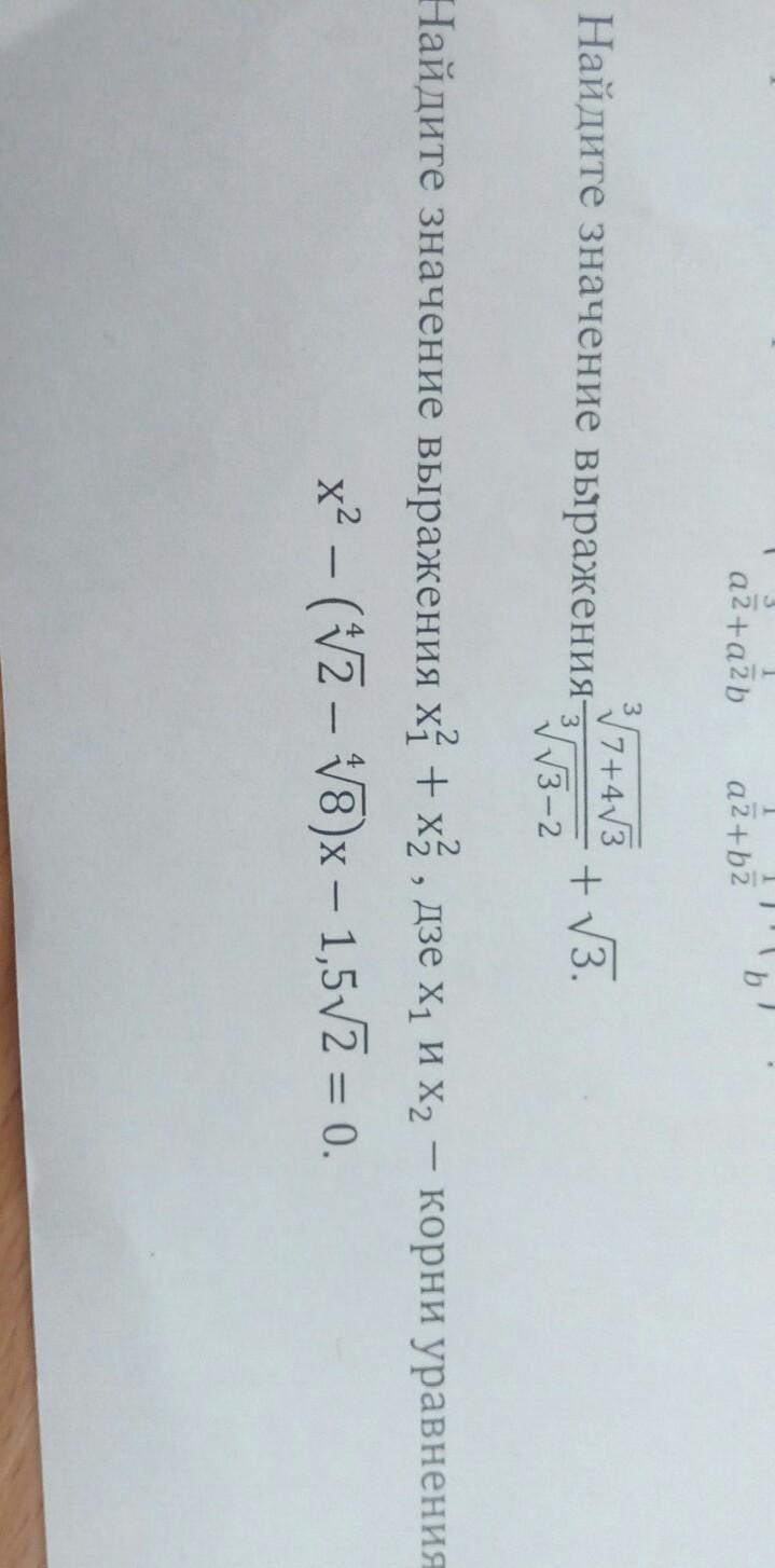 x_{1}^{2}+x_{2}^{2} =(x_{1} +x_{2})^{2}-2x_{1}x_{2}=(sqrt[4]{2}-sqrt[4]{8})^{2}-2*(-1,5sqrt{2}) =sqrt{2}-2sqrt[4]{16}+sqrt{8}+3sqrt{2}=sqrt{2}-4+2sqrt{2}+3sqrt{2}=6sqrt{2}-4