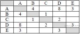 Между населёнными пунктами A, B, C, D, E построены дороги, протяжённость которых (в километрах) приведена в таблице.
