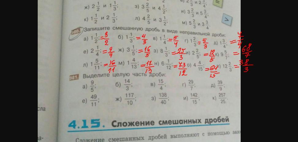 Запишите смешанную дробь в виде неправильной дроби это вон то которое 980 дам 15 балов