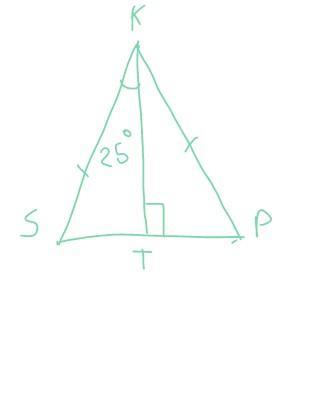 В равнобедренном треугольнике высота проведенная к основанию ,является и биссектрисой,и медианой,значит-угол СКТ=РКТ=25,СТ=РТ