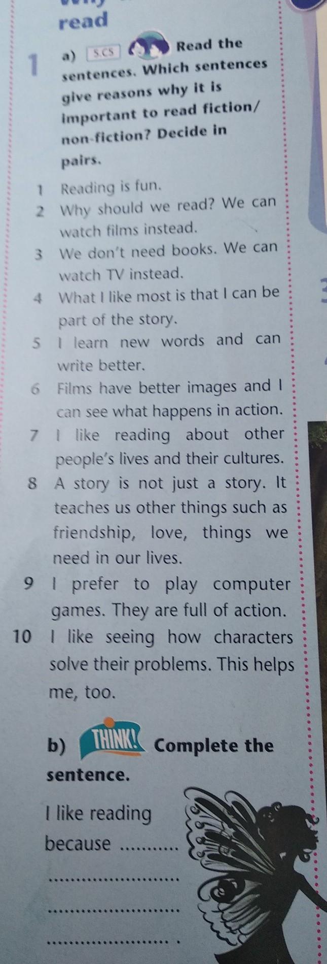 В "а" просят просто выбрать пункты,которые объясняют, почему читать - это важно.