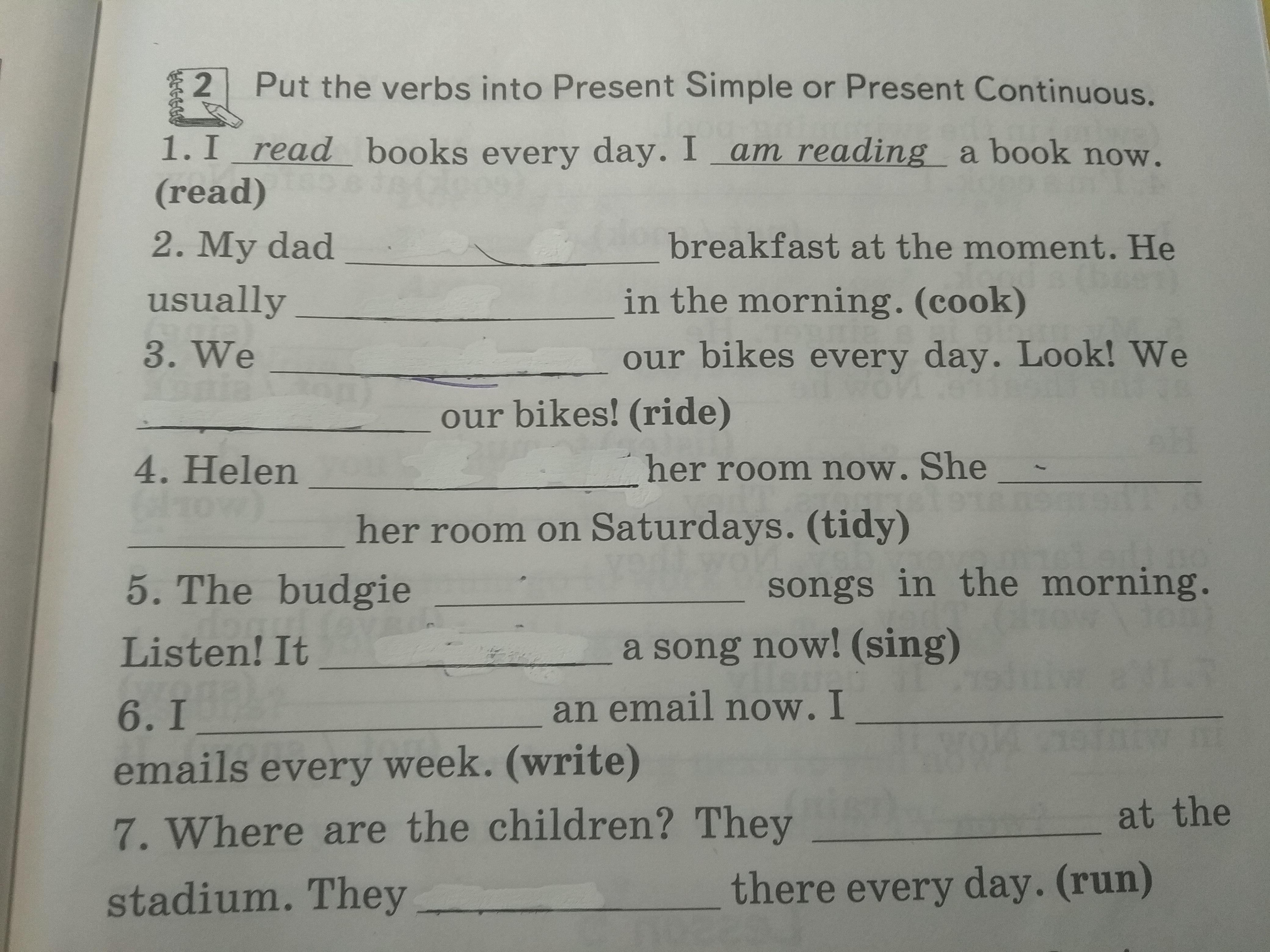 Helen is tidying her room now. She tidies her room on Saturdays.