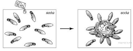 Какой оказалась реакция инфузорий на зелёные водоросли? В изображённом на рисунках опыте экспериментатор добавил в аквариум, в котором находились одноклеточные простейшие — инфузории, небольшое количество воды с зелёными водорослями. Рассмотрите рисунки и ответьте на вопросы.Как называется общее свойство организмов, которое иллюстрирует этот опыт?