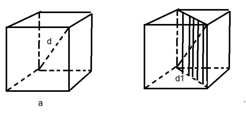 рассмотрим сечение проходящее через диагональ куба и диагональ нижней грани