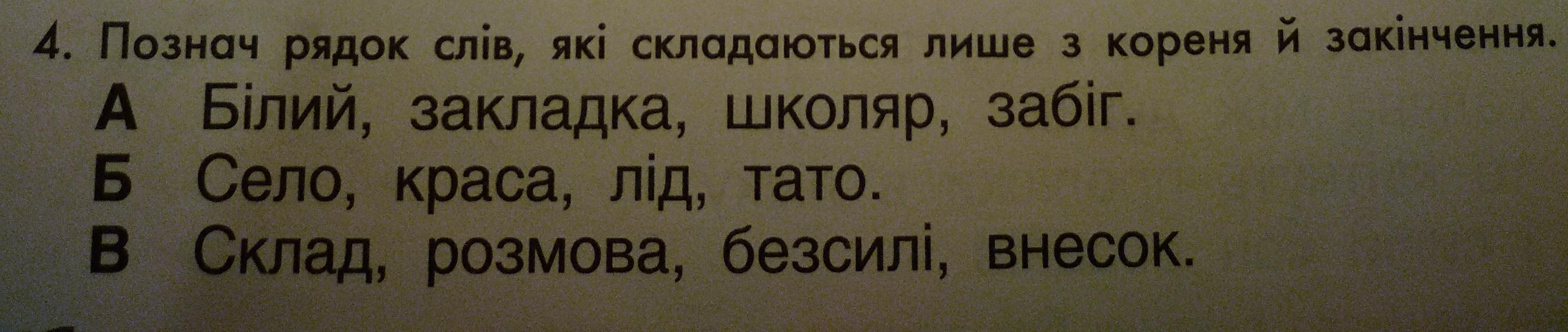 Варіант «В» неправильний тому, що слово «розмова» має префікс роз-, слово «безсилі» має префікс без-, а слово «внесок» — префікс в-