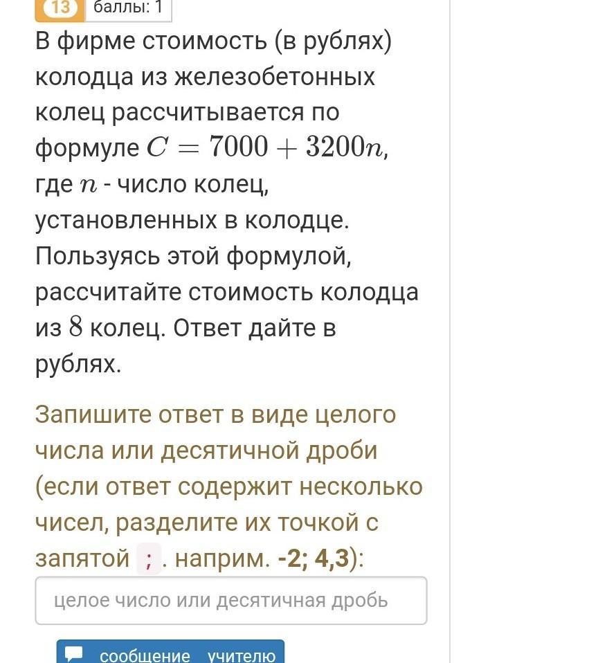 C = 7000 + 3200*8 = 7000 + 25600 = 32600