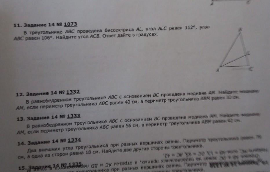 13.ПУСть АВ+АС=х, ВМ=СМ=у, тогда периметр АВС равен 2х+2у=56, откуда х+у=56/2=28, значит, АМ=42-38=14/см/
