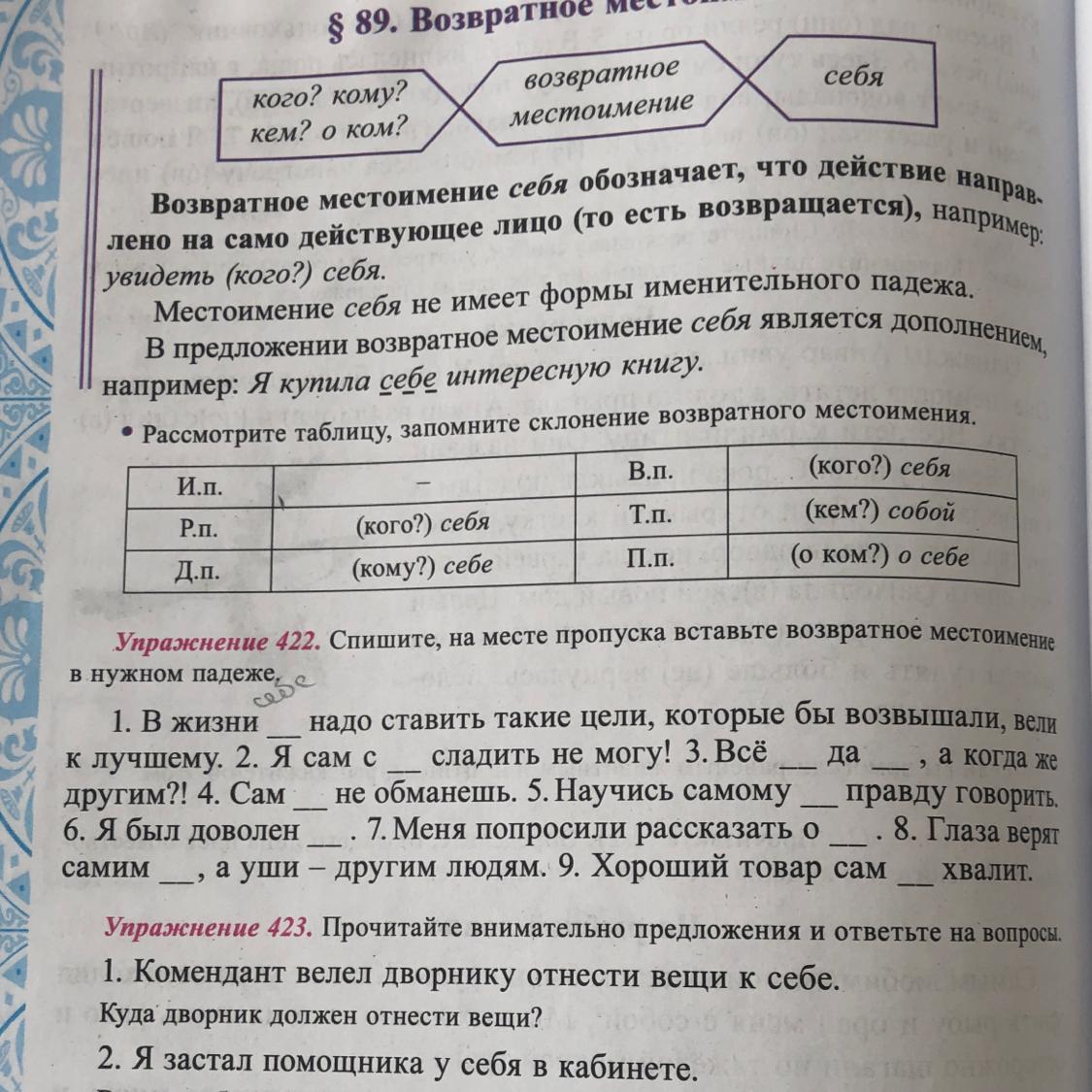 1.В жизни себе надо ставить такие цели, которые бы возвышали, вели к лучшему. 2. Я сам с собой сладить не могу! 3. Всё себе да себе, а когда же другим?! 4. Сам себя не обманешь. 5. Научись самому себе правду говорить. 6. Я был доволен собой . 7. Меня попросили рассказать о себе. 8. Глаза верят самим себе, а уши другим людям. 9.Хороший товар сам себя хвалит.