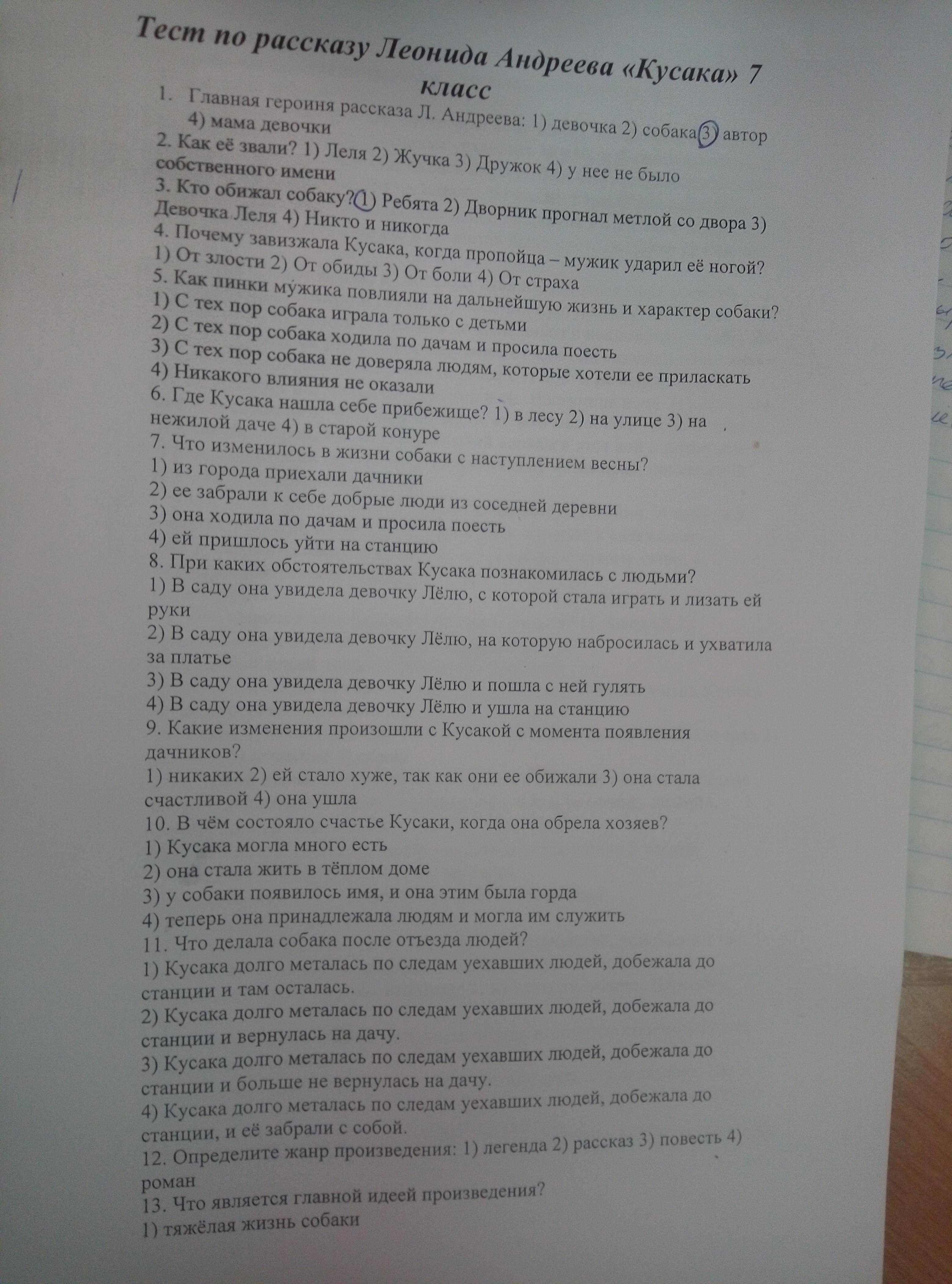 Тест по рассказу Леонида АНДРЕЕВА Кусака 7 класс Помогите у меня урок срочно заранее спс 34 балла