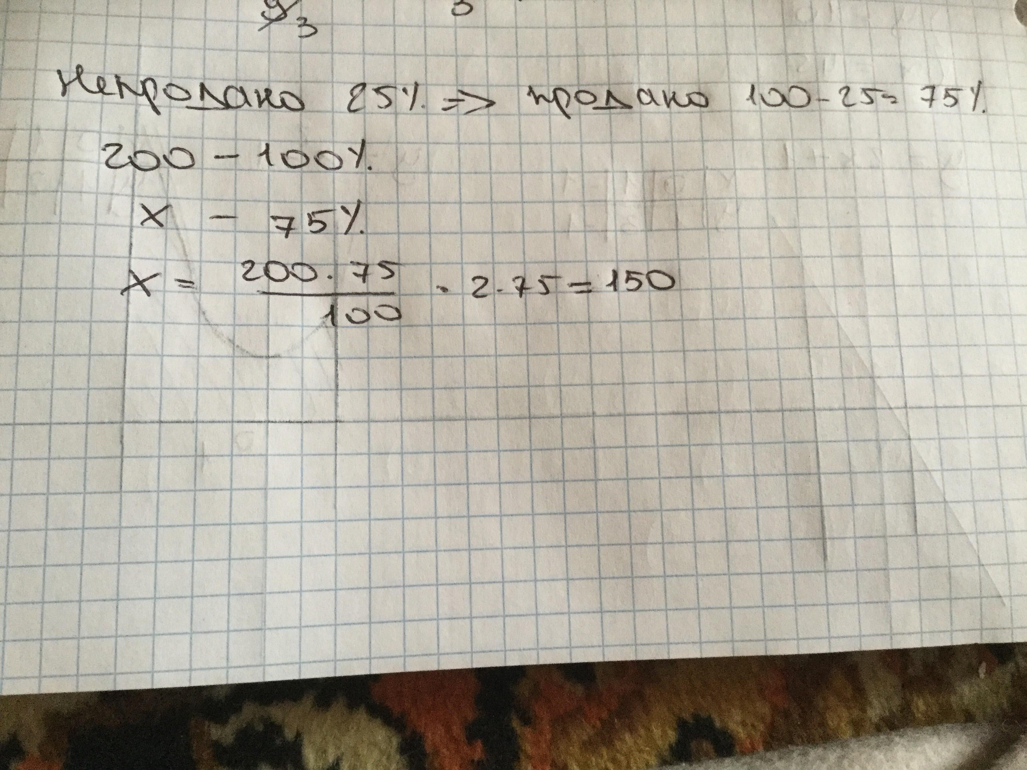 В театральной кассе было 200 билетов на спектакль. Осталось непроданные 25% билетов. Сколько билетов на спектакль было продано ?