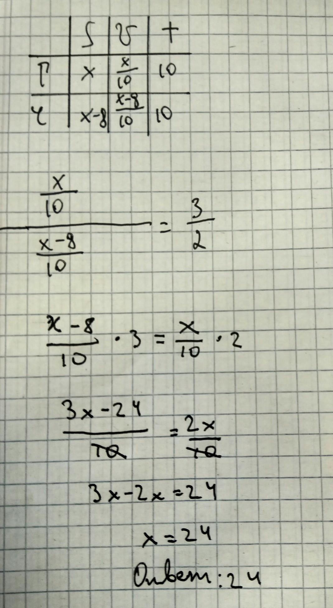 Чебурашка и Крокодил Гена соревновались в скорости бега по коридору. Старт был дан спортсменам одновременно, причем Чебурашка бежал из левого конца коридора в правый конец, а Крокодил Гена - наоборот, из правого в левый. Спортсмены встретились через 6 секунд после старта, а когда за следующие 4 секунды Крокодил Гена добежал до своего конца коридора, Чебурашке оставалось бежать ещё 8 метров. Чему равна длина коридора? Ответ обосновать.