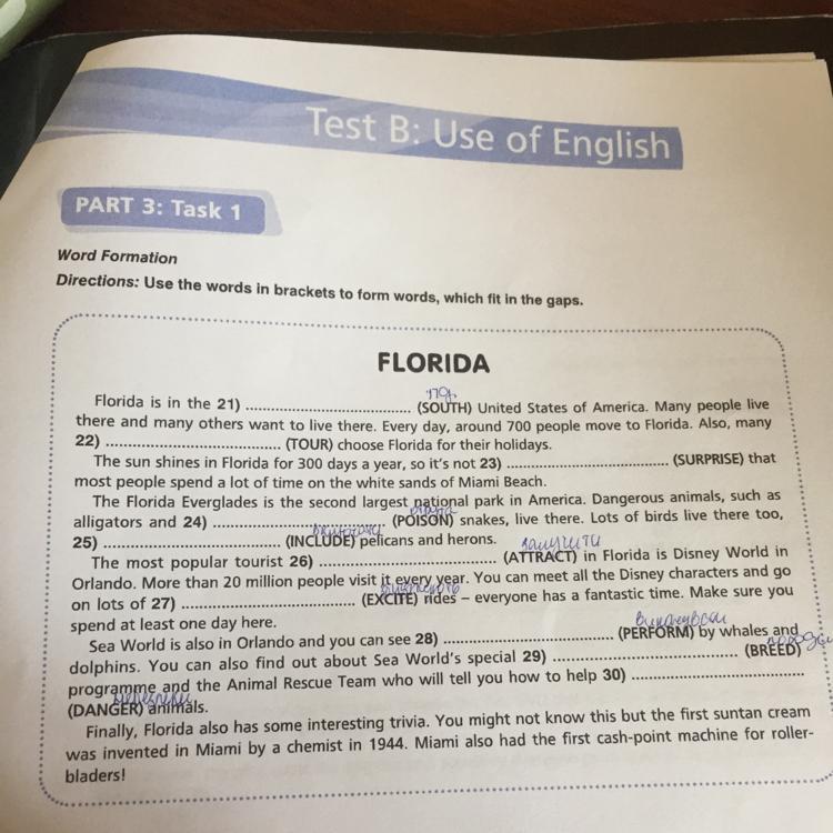 1) Southern? 2) Tourists 3) Surprising 4) Poisonous 5) Including 6) Attraction 7) Exciting 8) Performances 9) Breeding 10) Endangered
