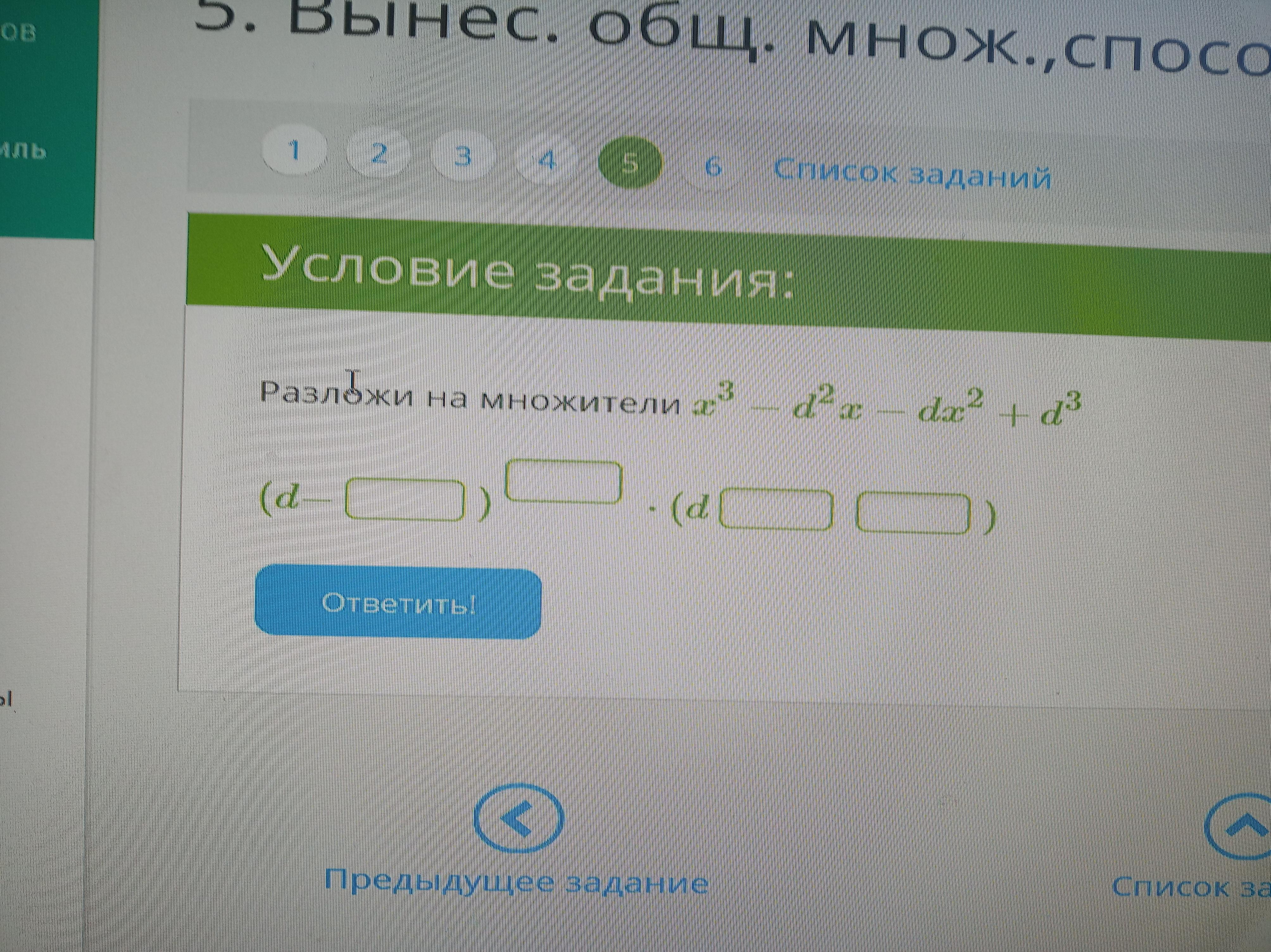 х³-д²х-дх²+д³=(х³+д³)+(-д²х-дх²)=(х+д)(х²-хд+д²)-дх(х+д)=(х+д)(х-д)²