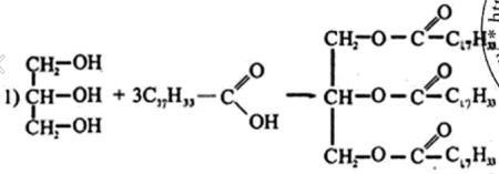 С₃Н₈O₃ + 3C₁₈H₃₄O₂ => C₅₇H₁₀₄O₆ + 3H₂O