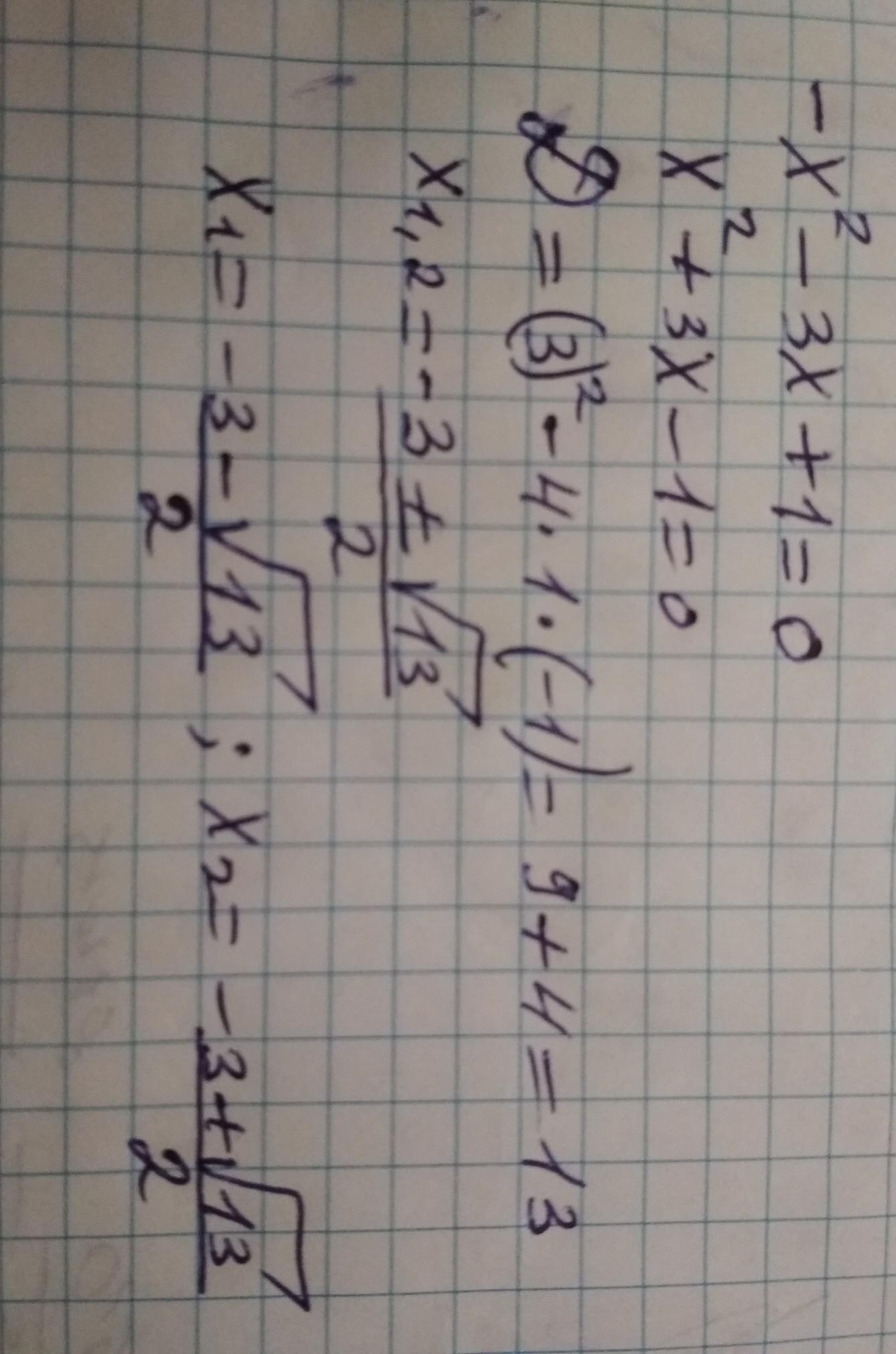 х1 = (3 + √13) / (-2*1) = -(3 + √13)/2,