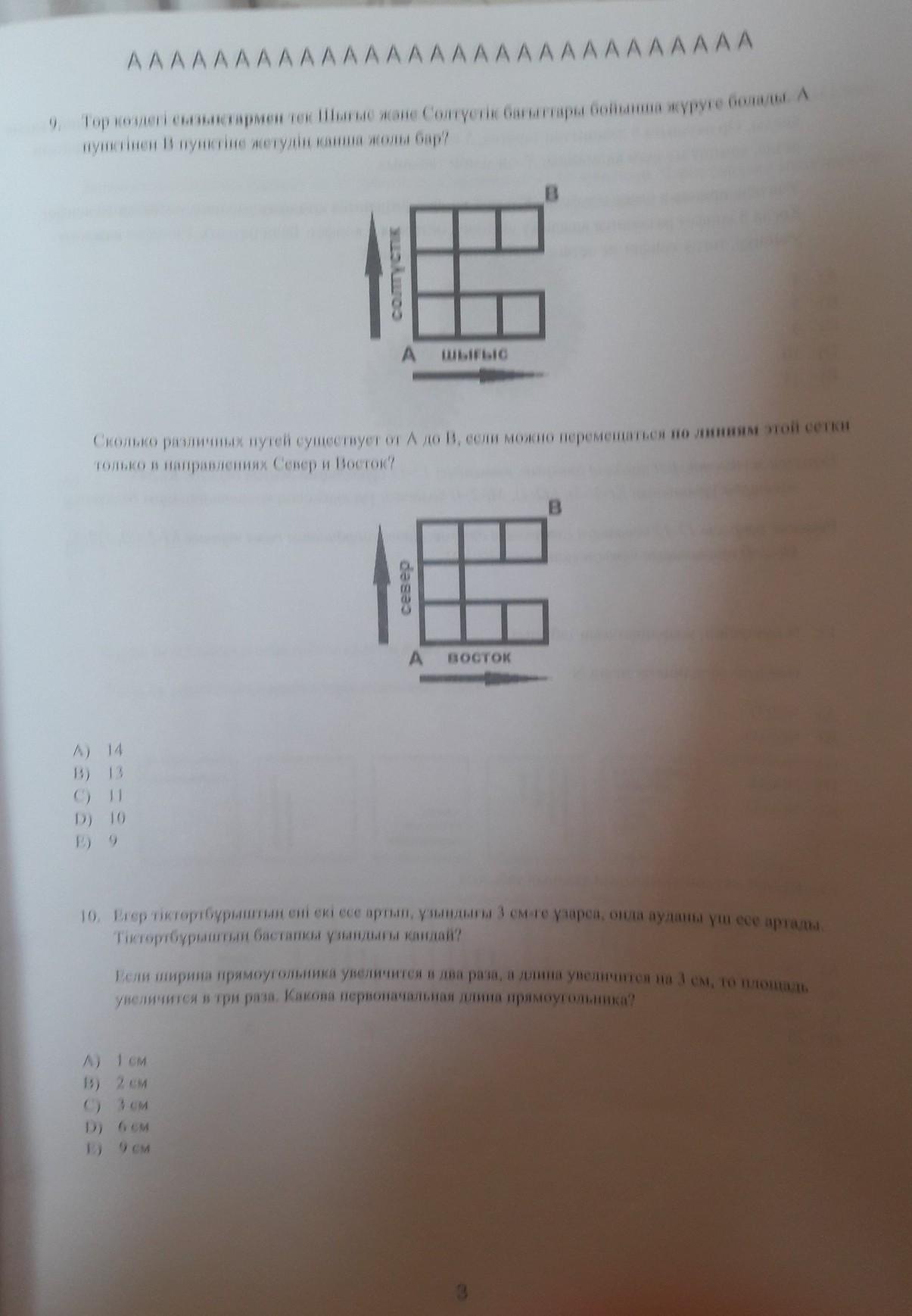 9.Сколько различных путей существует от А до В,если можно перемещятся по линиям этой сетки только в направлениях Север и Восток?