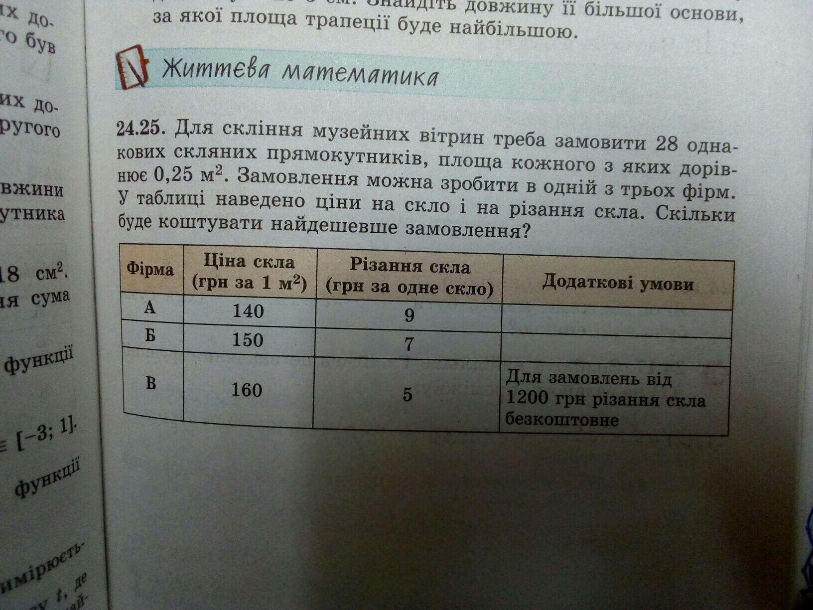 В = 160 * 9 = 1440- оскільки в нас більше 1200 гривень - різати скло не потрібно.