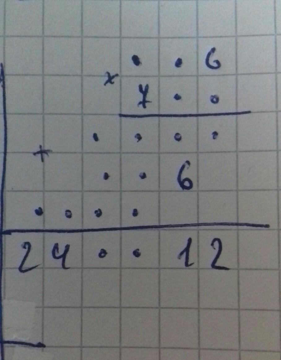 Помогите пожалуйста решить то что на картинке.Вместо точек нужно вставить числа что бы получить умножение в столбик