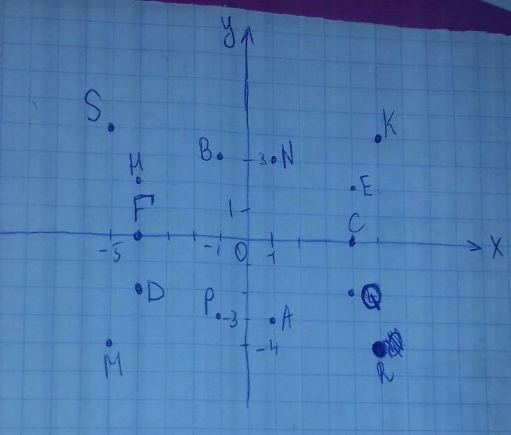 Относительно начала координат: F(-4;0); A(1;-3); D(-4;-2); K(5;4);