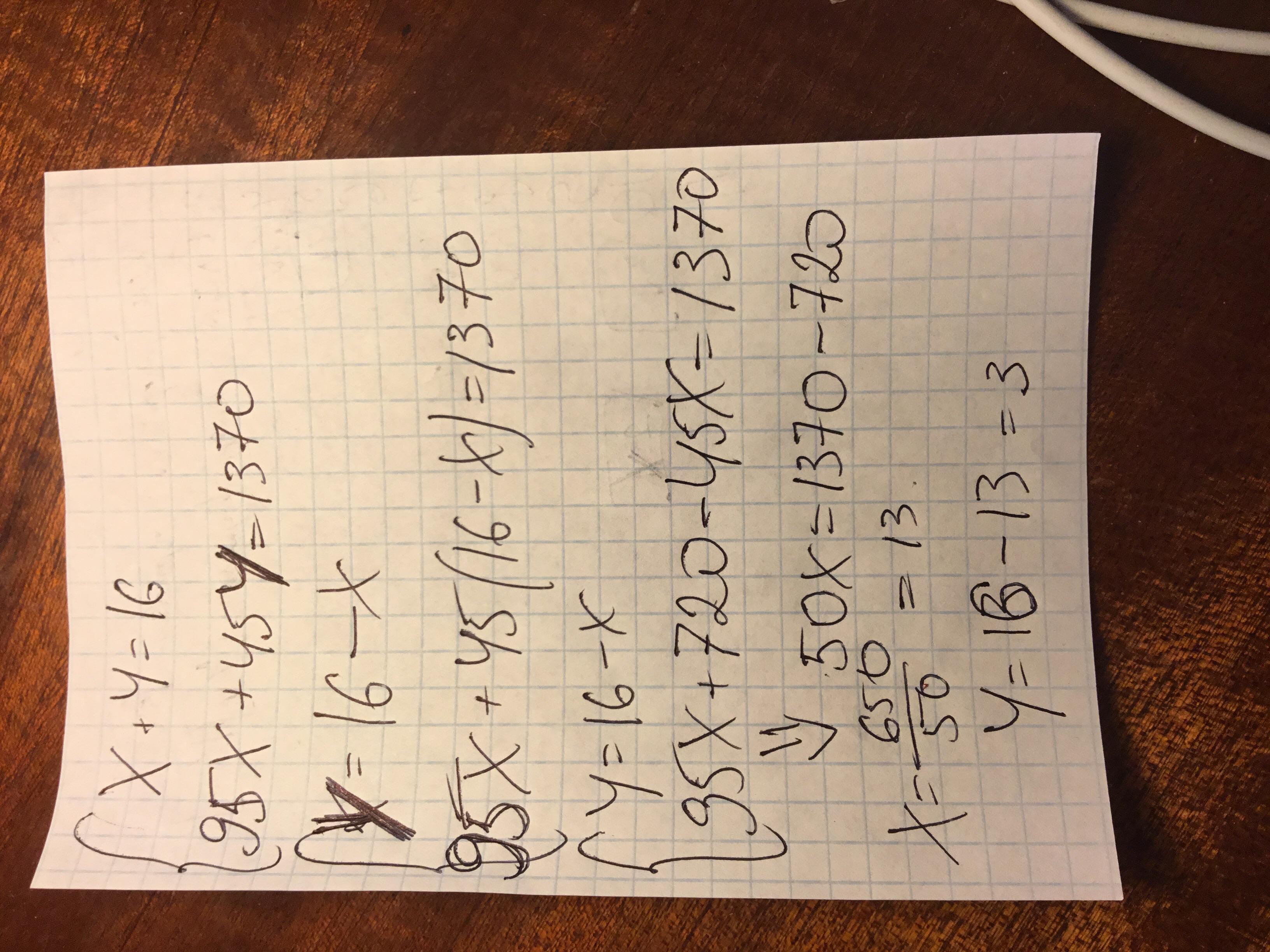Купили 16 зошитів по 95 копійок і по 45 копійок заплативши за всю покупку 13 грн 70 копійок.Скільки купили зошитів кожного виду.Скламти рівняннч