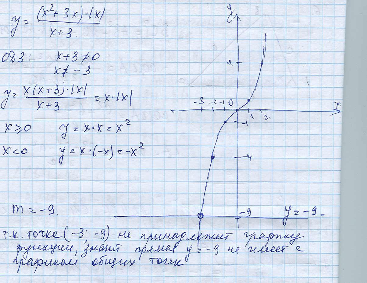 23. постройте график функции y=(x^2+3x)* модуль x/x+3. определите, при каких значениях m прямая y=m не имеет с графиком ни одной общей точки