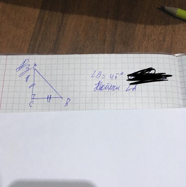 По свойству острых углов ∠А=90°-∠В=90-45=45°, значит треугольник еще и равнобедренный.