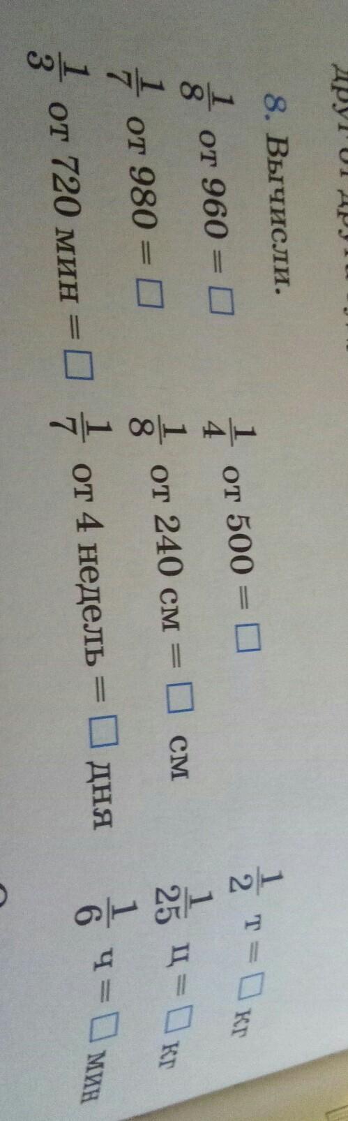 Во всех заданиях надо найти только одну долю. Знаменатель показывает, на сколько частей надо разделить, чтобы получить 1 долю.