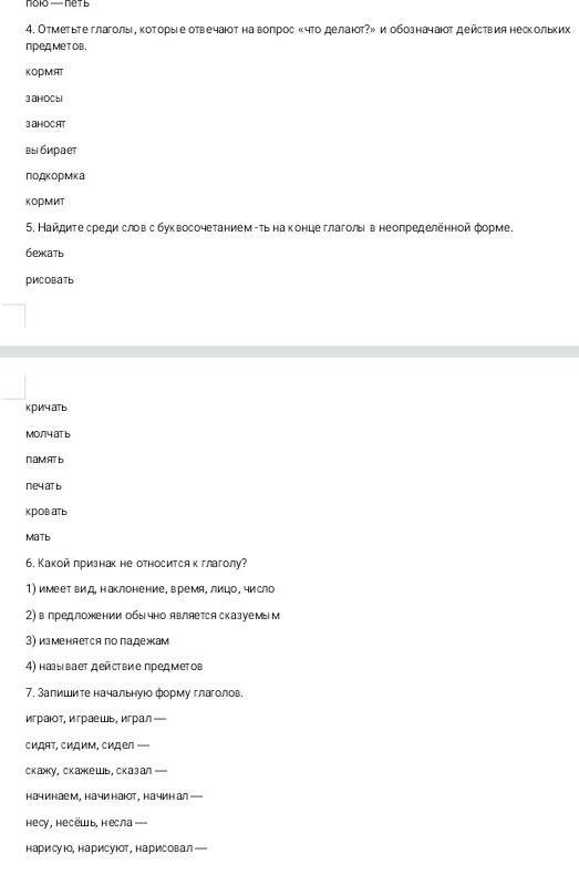 5. бежать, рисовать, кричать, молчать.