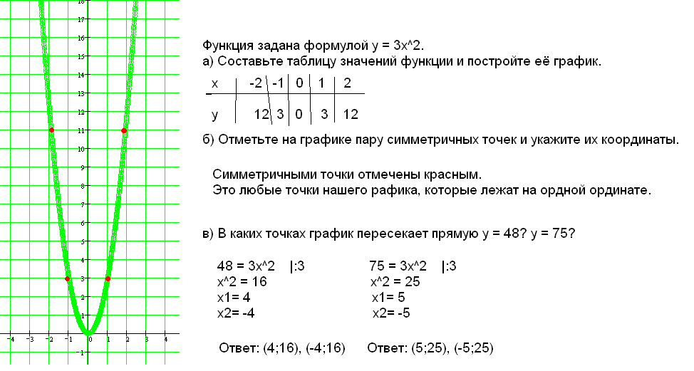б) Отметьте на графике пару симметричных точек и укажите их координаты.