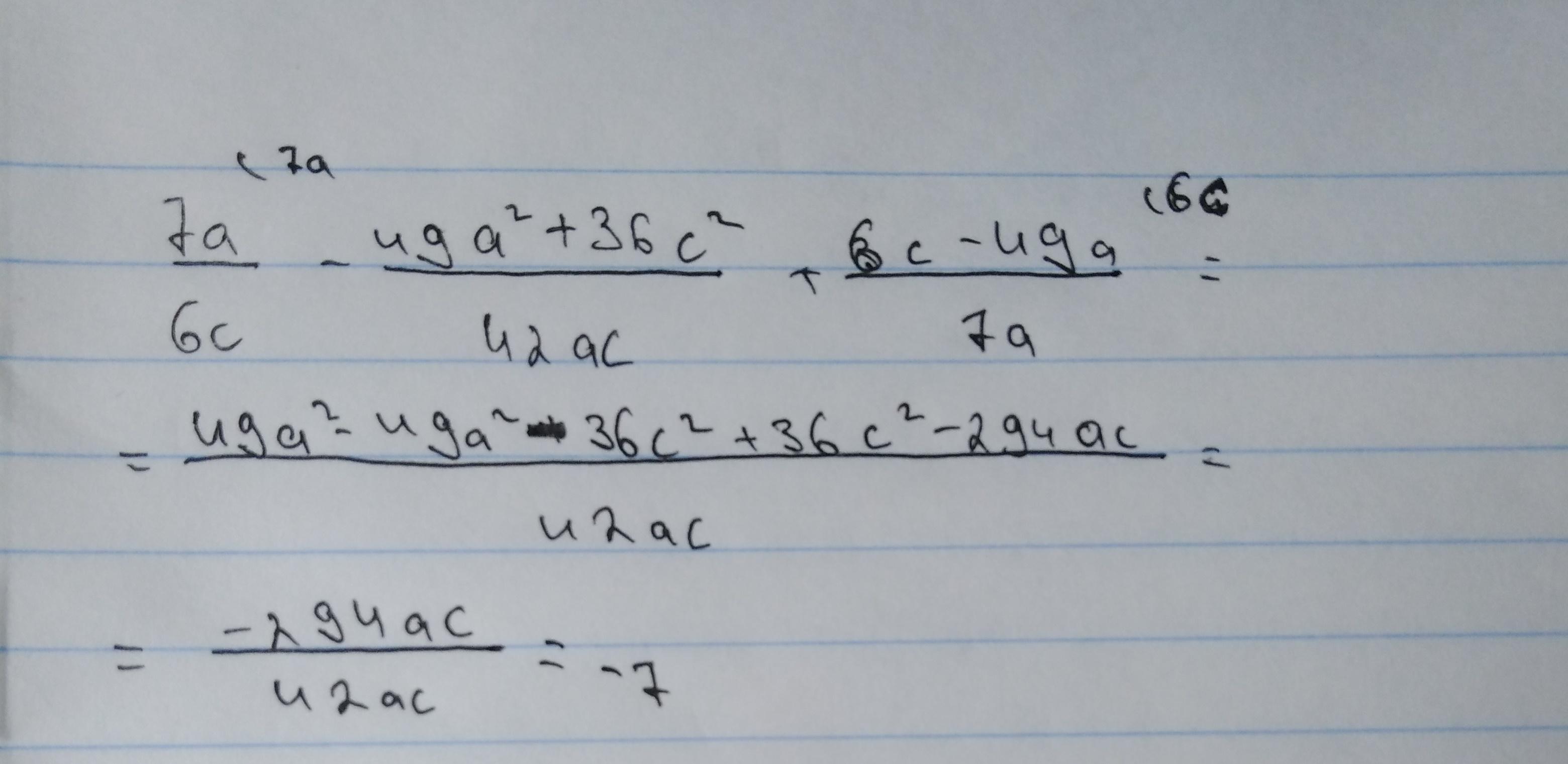 Я бы не стала перемножать 49 и 6. Получилось бы -49*6/42= -7*7*6/(7*6)=-7. А что Вам непонятно?