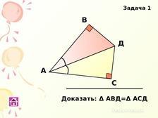 Прямоугольные треугольники равны по гипотенузе АД и острому углу (∠ВАД = ∠САД).