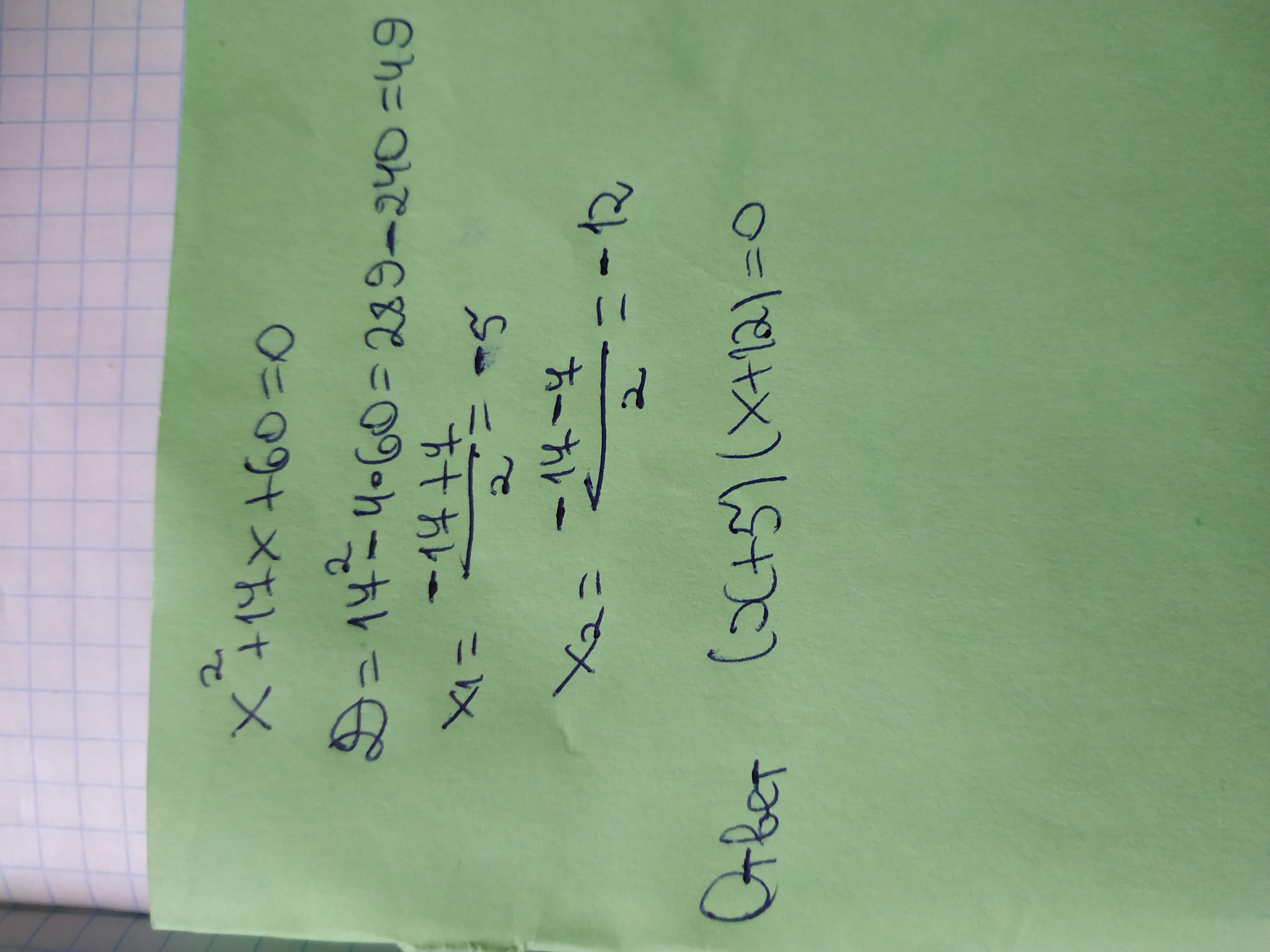 Разложи на множители квадратный трёхчлен x2+17x+60