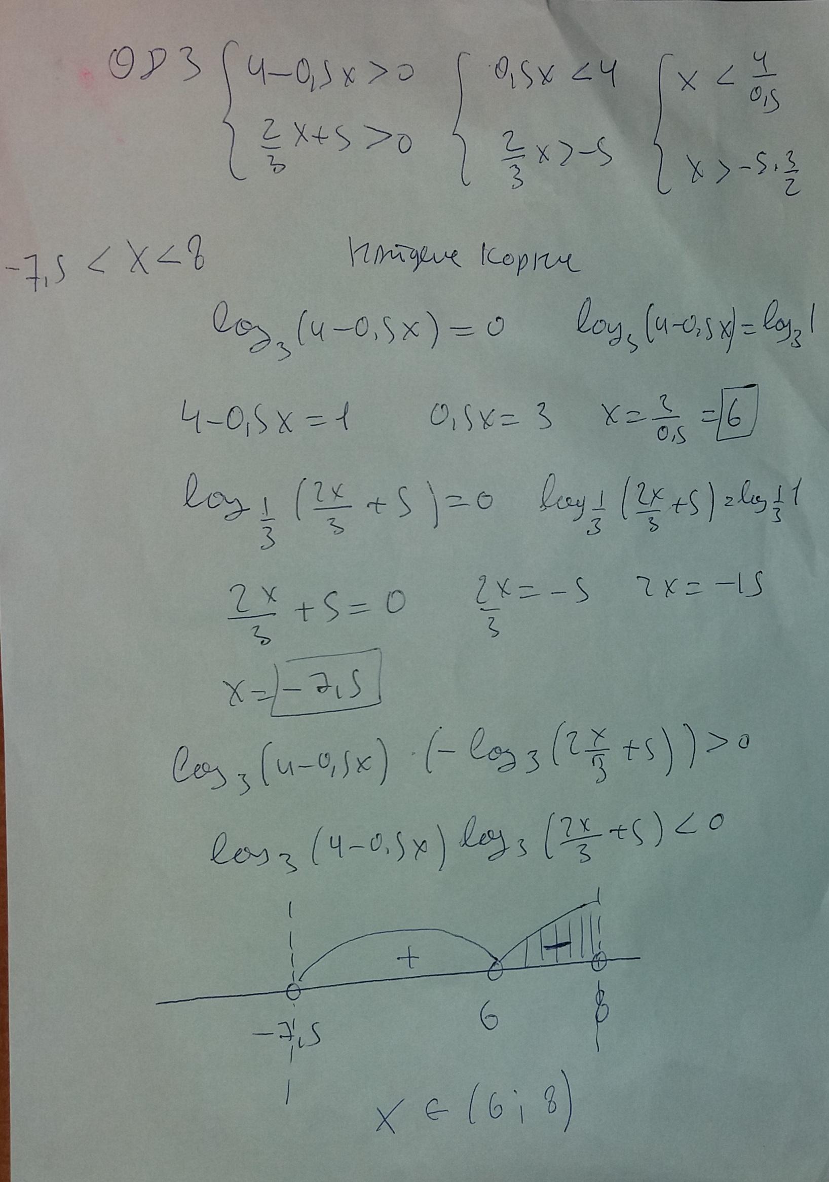 log_{3}(4-0,5x)cdot log_{frac{1}{3}}(frac{2x}{3}+5)  textgreater  0