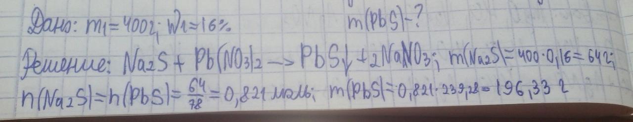 Дано 400 г 16% раствора сульфида натрия, к нему добавили нитрат свинца. Найти массу осадка