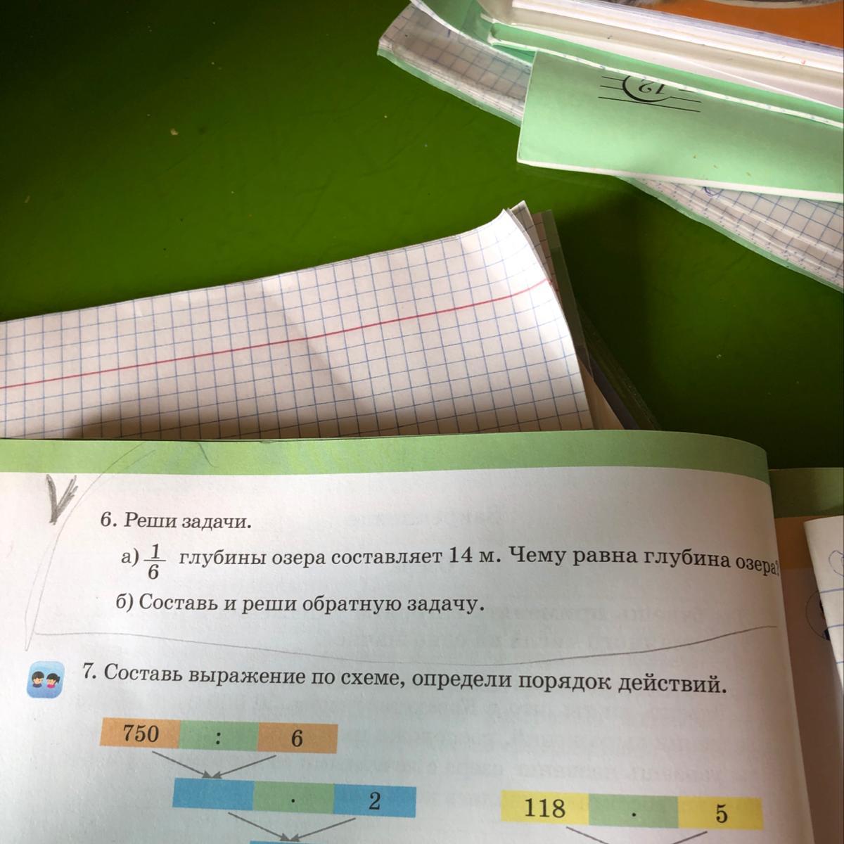 б) Глубина озера составляет 84 м. Чему равна часть его глубины?