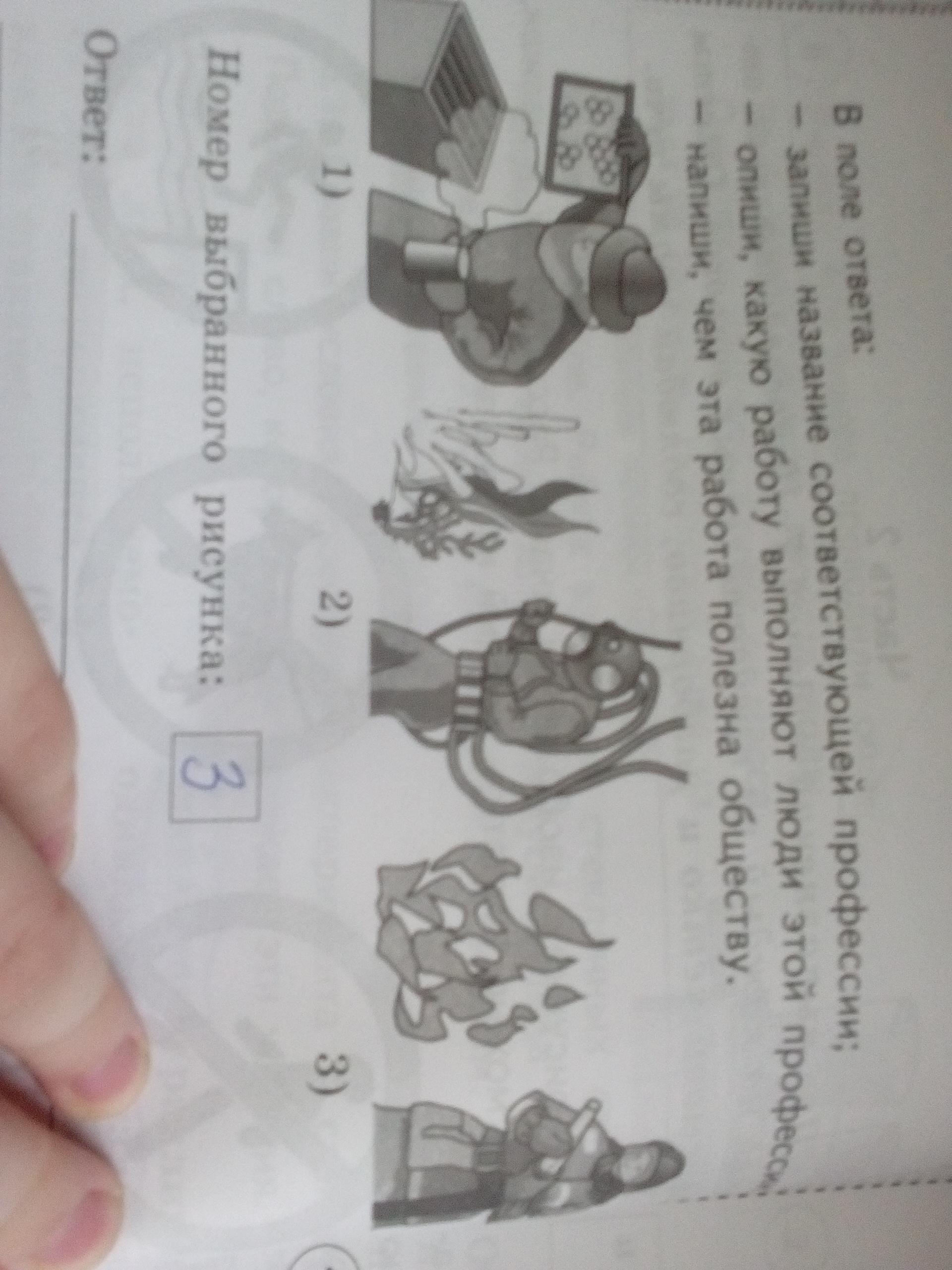 2) Пожарный-тушит огонь, спасает людей из горящих домов.