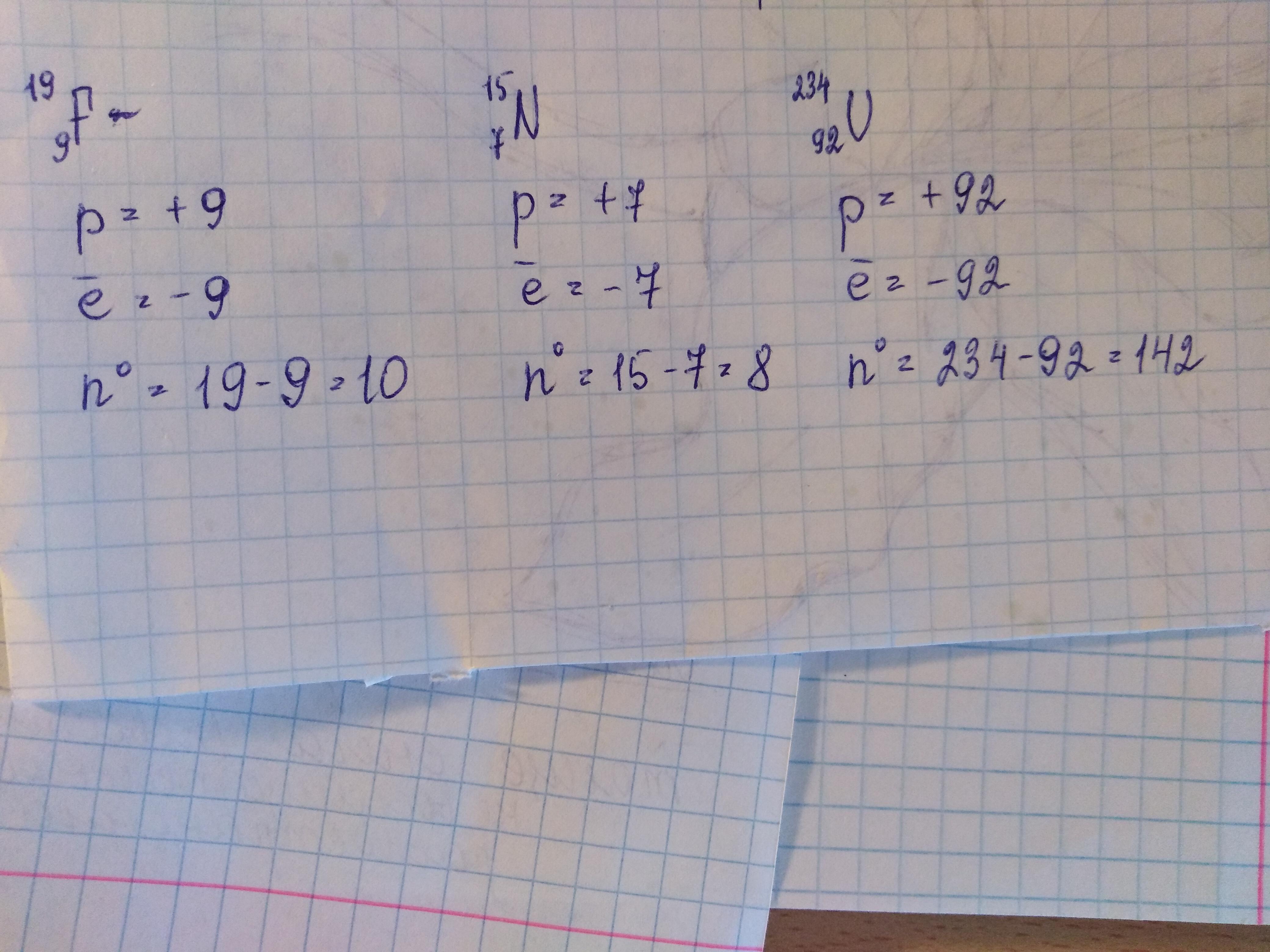 определите число протонов электронов и нейтронов в атоме азота 7n15 атоме фтора 9F19 атома урана 92U234