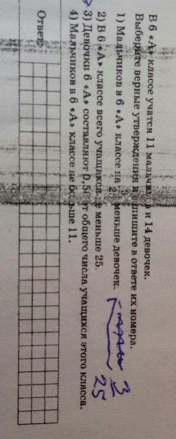 верные утверждения только 3 и 4 два неподходит потому что в классе ровно 25 учеников и первое тоже не подходит
