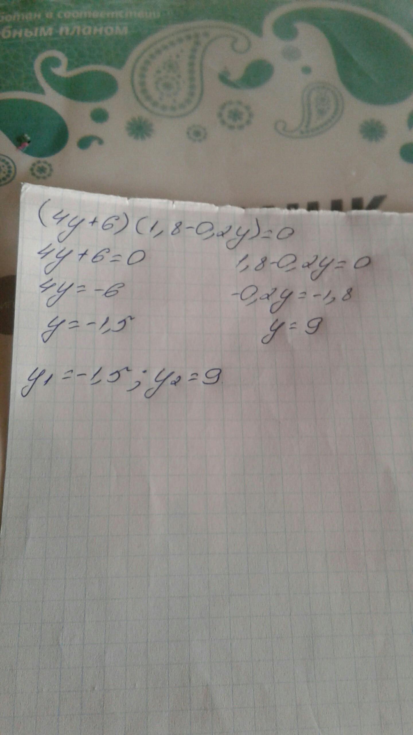 4y+6=0 1,8-0,2y=0
