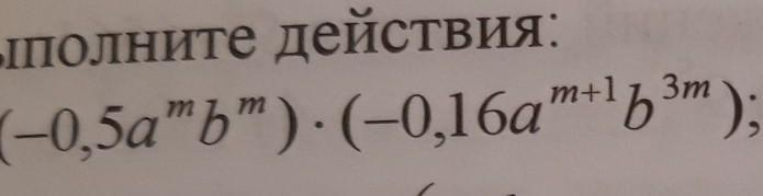 (-0,5a^{m}b^{m})*(-0,16a^{m+1}b^{3m})=(-0,5 * (-0,16))*a^{m+m+1}*b^{m+3m}=0,08a^{2m+1}b^{4m}