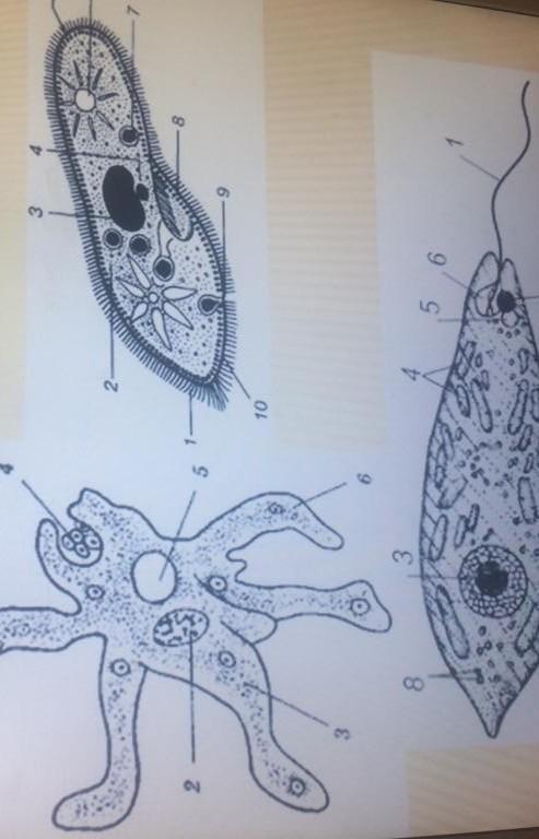 Амёба : 2-ядро 3-цитоплазма 4-происходит эндоцитоз 5-вакуоль 6-ложноножка