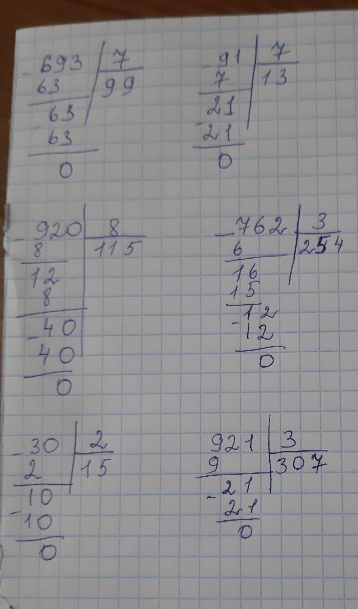 ВЫПОЛНИТЕ ДЕЛЕНИЕ УГОЛКОМ ( примеры могут быть с остатком )! 693:7,91:7,60:4,920:8, 762:3,95:5,30:2,921:3,812:4 (30 БАЛЛОВ!)
