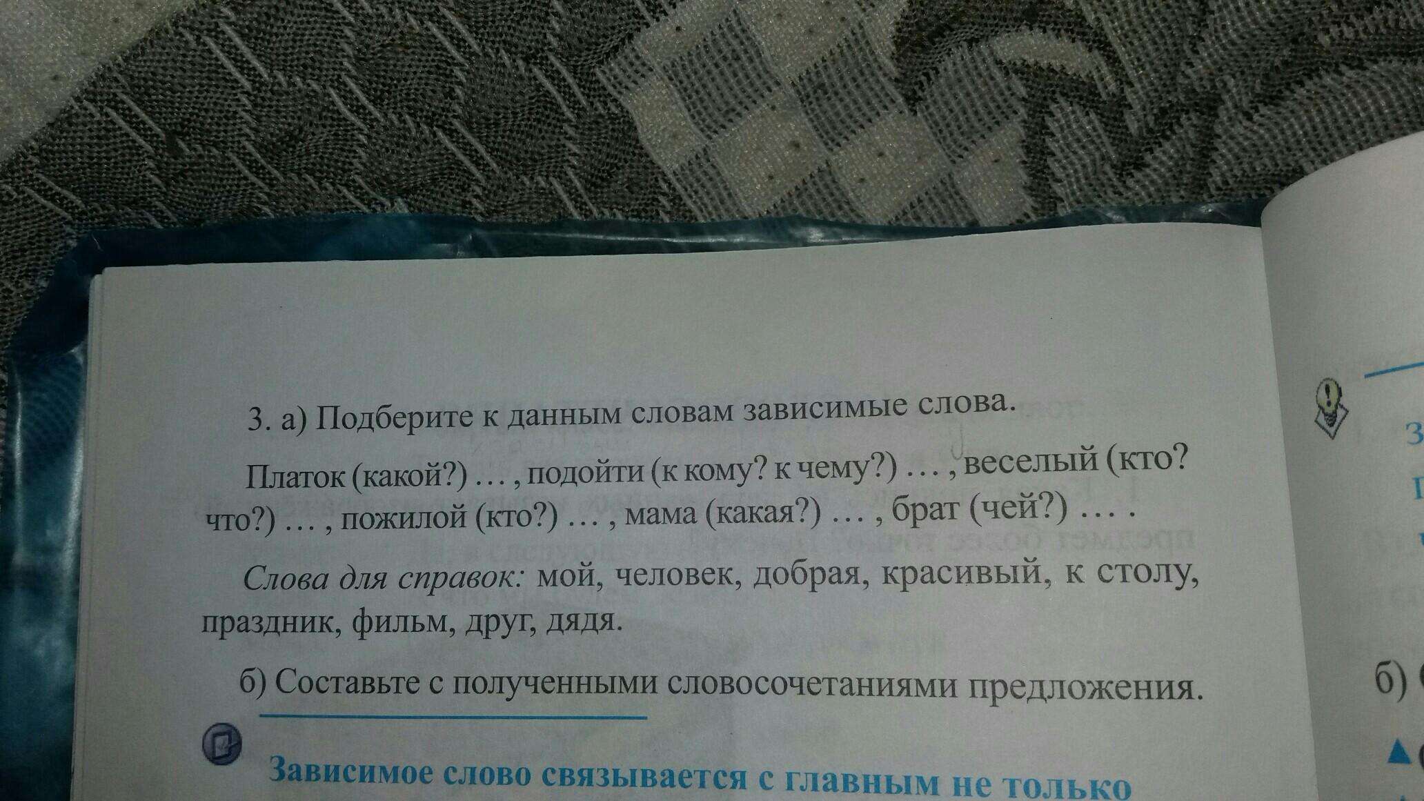 Платок красивый;подойти к маме,подойти к столу,подойти к другу;весёлый праздник,весёлый фильм;пожилой человек;мама добрая;брат мой