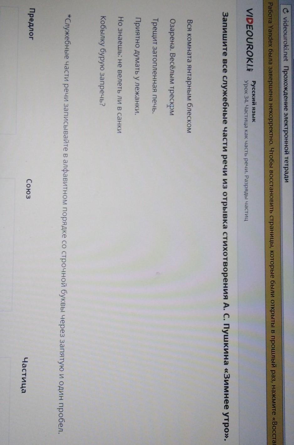 Предлоги: У, В. Союз: Но. Частицы: Не, ли.