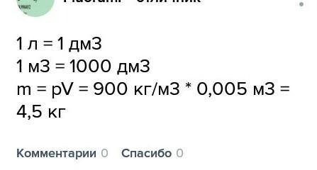 m=v×p m=0.003м^3×900кг/м^3=2700кг.
