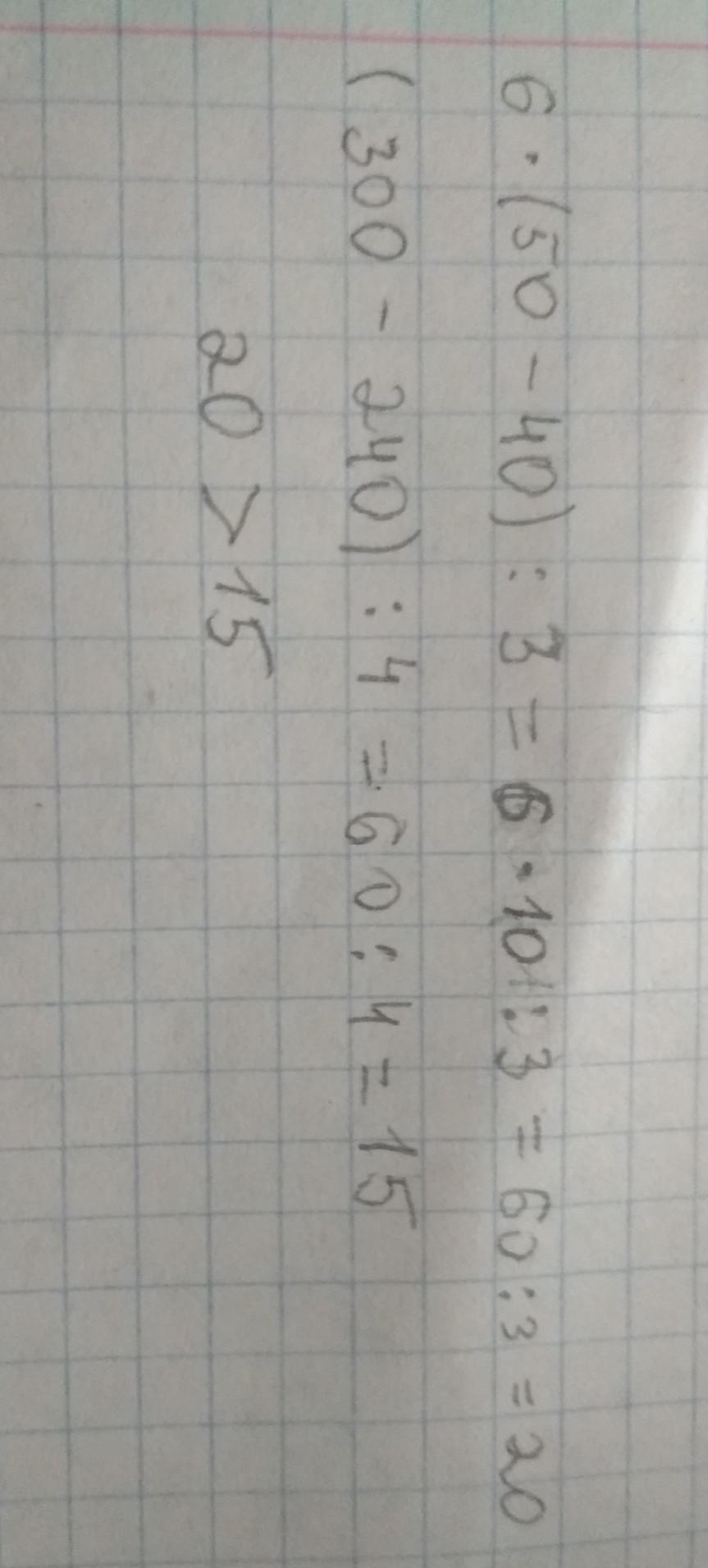 Найди значение выражения. Сравни. 1) 6*(50-40):3= 2) (6*50-6*40):4= Пришлите пожалуйста фото с решением